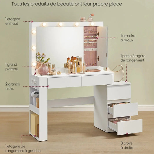 Coiffeuse Meuble LED | Miroir Coulissant