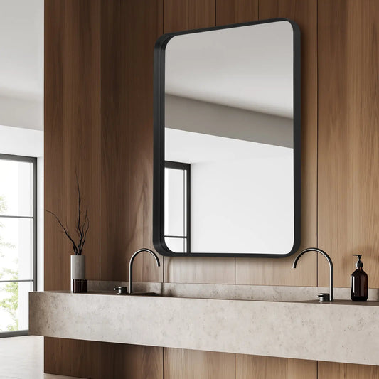 Miroir sur Pied / Mural Rectangulaire | Arrondi Noir
